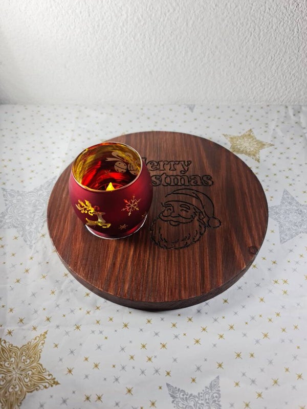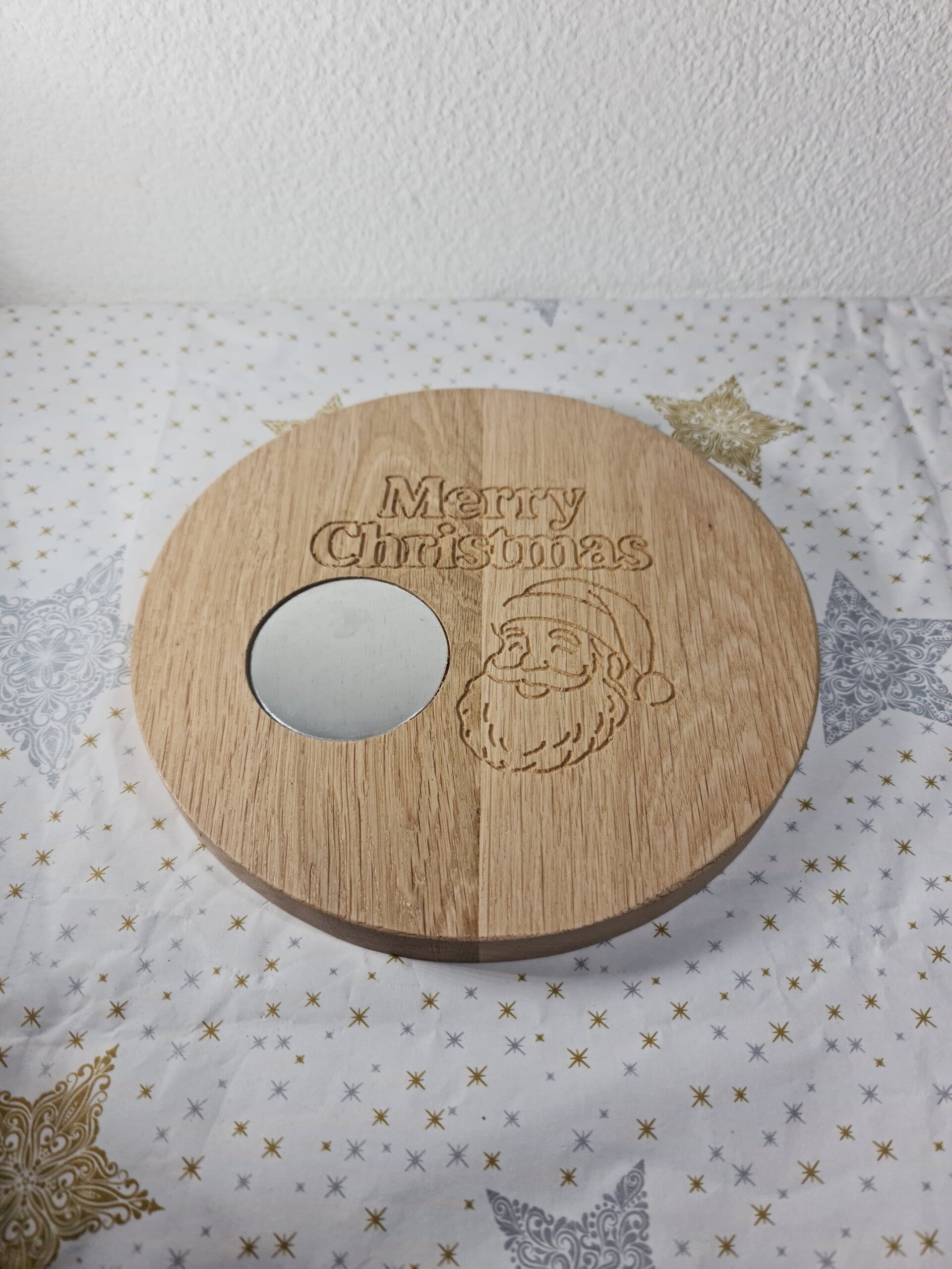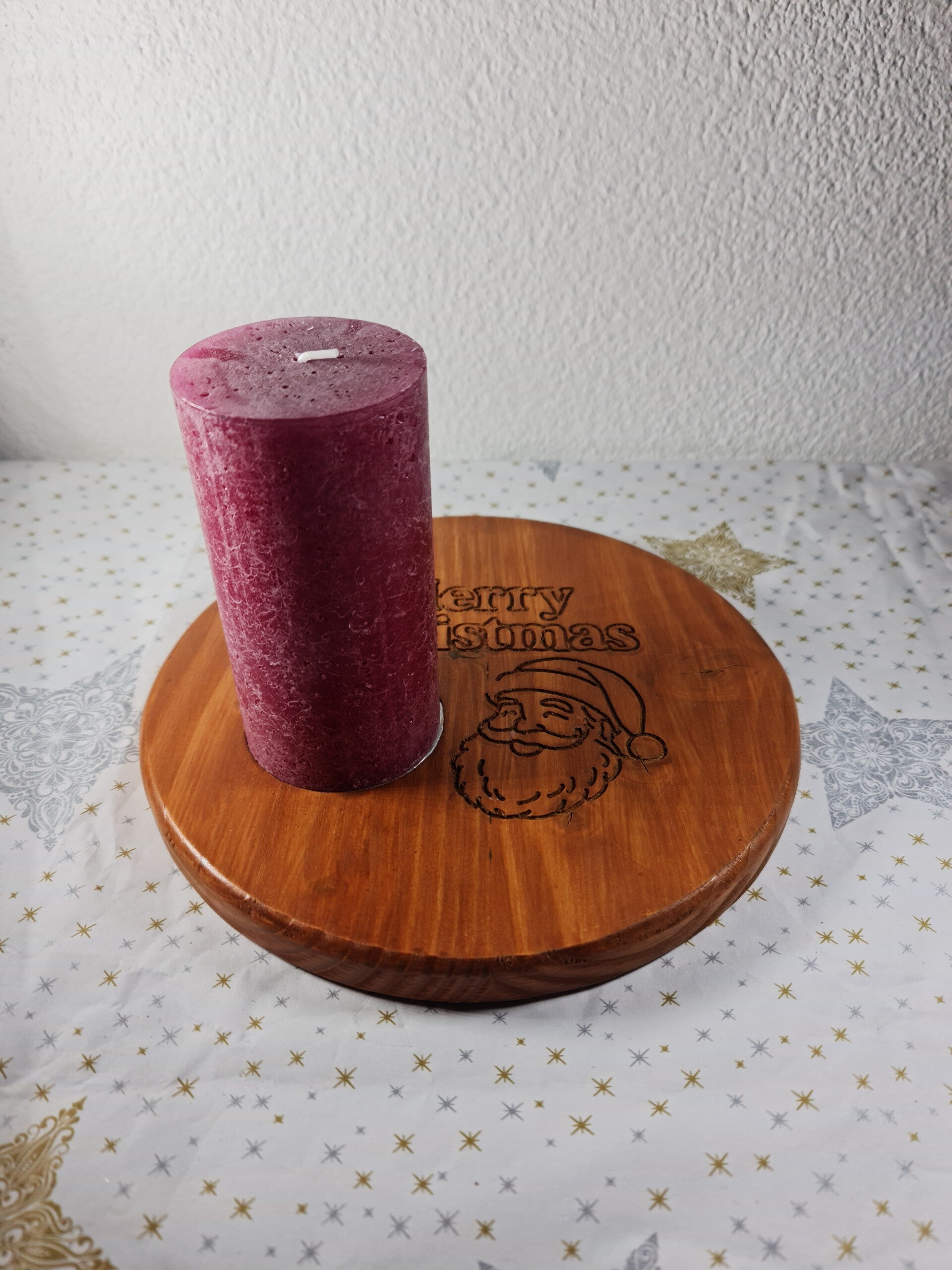 Met de hand gemaakte houten kandelaar met een feestelijke Merry Christmas-gravering.