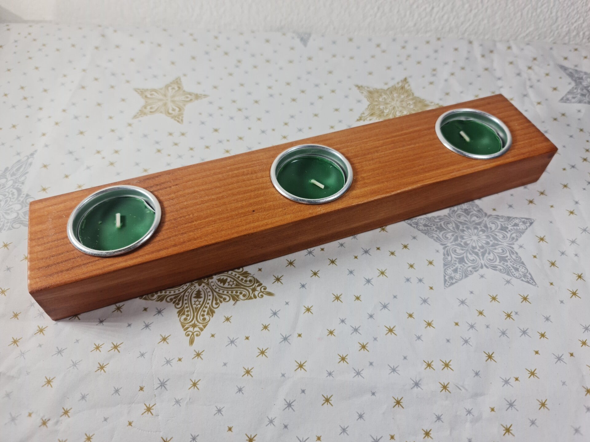 Elke kandelaar is 2 keer behandeld. Houtsoort wat ik gebruikt heb: Douglas, voor de teak en noten variant en Europees Eiken.